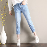 顺崇2018牛仔裤女九分哈伦裤2018春夏季韩版高腰宽松直筒长裤子春