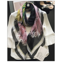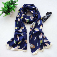气质羽毛真丝丝巾女夏季薄款大方巾百搭桑蚕丝秋围巾披肩韩国 如图