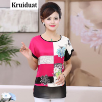 Kruidvat2017夏季新款中年女装宽松大码T恤中老年妈妈装圆领套头短袖Z003