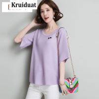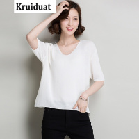 Kruidvat2017夏季新款冰麻女装五分袖薄针织衫