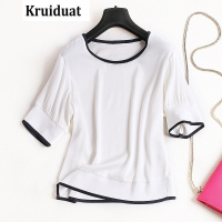 Kruidvat女装2017夏季新款撞色织带T恤简约拼接