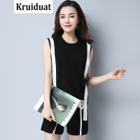 Kruidvat2017夏季女装新款圆领宽松时尚冰麻T恤套装