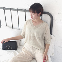 锦满园 2017薄款透气宽松套头短袖针织衫防晒衣女装夏款空调衫