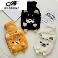 秋天犬法兰绒双插手热水袋充水灌水热水袋含水袋暖手宝暖宝宝大号
