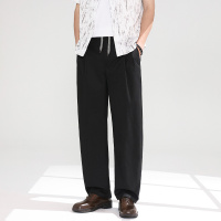 老钱风天然亚麻休闲裤子男2026春夏季新款松紧腰宽松阔腿透气男裤