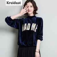 Kruidvat2017春季新款韩版时尚丝绒卫衣修身长袖半高领春季女式绒衫M7