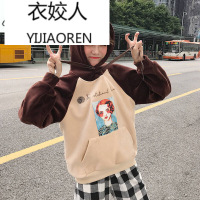 衣姣人(YIJIAOREN)2018秋装新款韩风拼接撞色人物印花加厚丝绒卫衣杏色均码