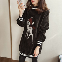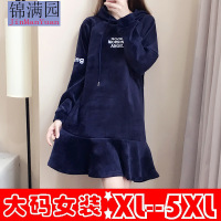 秋冬新款加绒加厚金丝绒T恤裙女200斤胖妹妹中长款显瘦卫衣潮
