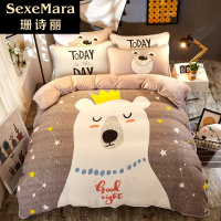 珊诗丽保暖法兰绒四件套珊瑚绒套件双面绒AB版法莱绒冬季加厚套件1.51.8贪睡熊-WY标准号(被套200*230床单25