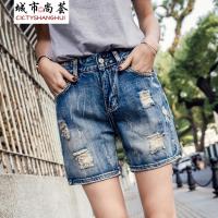 破洞牛仔短裤女五分裤大码中裤宽松显瘦休闲阔腿三分热裤潮