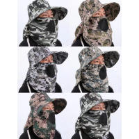 夏季迷彩太阳帽户外防晒采茶帽钓鱼帽男披肩帽透气遮阳帽女劳保帽