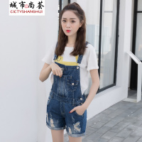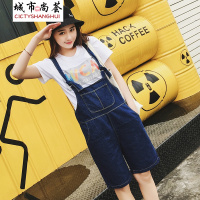 装新款学院风牛仔背带短裤 女 学生阔腿吊带裤