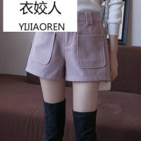 衣姣人(YIJIAOREN) 初高中学生时尚少女2018秋冬新款甜美学院风毛呢阔腿短裤女大码加厚显瘦A字打底 粉红色 S