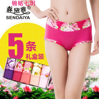 锦铭七玥森黛雅5条礼盒装印花性感女士内裤中腰女式三角裤 061