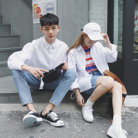 莞馨(wanxin)新款情侣装秋装2016新款白衬衫男长袖纯色bf男女纯棉上衣外套韩范