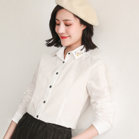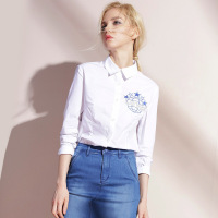 2018春装新款韩版女装纯棉白衬衫女长袖修身刺绣衬衣百搭打底上衣