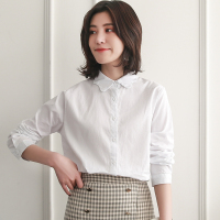 白衬衫女长袖秋装新款女装印花上衣纯棉刺绣打底衬衣 白色 S
