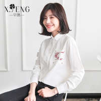 2018春装新款韩范白衬衫女长袖宽松纯棉刺绣衬衣休闲百搭打底上衣