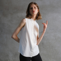 2018夏季新款通勤ol纯棉小立领暗襟无袖白衬衫女气质小衫