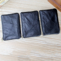 2017新款学生拉链硬币包女男式钥匙包简约小手包小清新卡包羊皮拼接女士零钱包大容量钱包女黑色纹路不相同