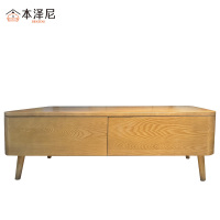 初嘉(CJ) 实木长茶几带抽屉桌子 原木色
