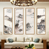 现代新中式风书房客厅装饰画四条屏长条国画四联竖版梅兰竹菊挂画