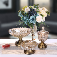 欧式水果盘客厅家居装饰品三件套水晶玻璃糖果罐烟灰缸样板间软装