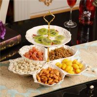 欧式双层陶瓷水果盘创意现代客厅蛋糕架干果盘糖果盘家居饰品摆件
