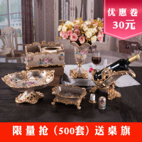 欧式水果盘套装客厅茶几六件装饰家居饰品树脂果盘纸抽盒摆件