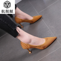 高跟鞋女秋季新款细跟浅口尖头单鞋鸵鸟毛猫跟鞋毛毛女鞋潮