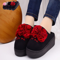 2017新款山茶花高跟棉拖厚底拖鞋女冬季时尚坡跟女鞋防滑保暖棉鞋