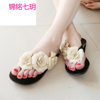 锦铭七玥夏季新款山茶花人字拖鞋女立体花朵沙滩女鞋平底夹趾凉拖鞋潮