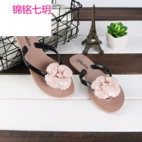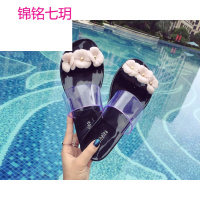 锦铭七玥新山茶花凉鞋 平底果冻鞋夏女士拖鞋 花朵平跟沙滩鞋 网红款