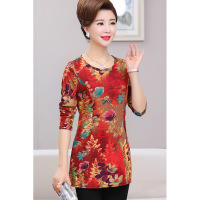 中老年女装春装新品打底衫长袖T恤40-50岁中年妈妈装蕾丝上衣大码