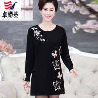 卓勝基中年女装春装连衣裙长袖T恤40-50岁妈妈秋装套头打底衫中长款薄