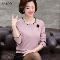 余果贝尔(YoungBell)余果贝尔冬季中老年女装大码妈妈装针织衫上衣40-50岁长袖T恤女棉毛衣