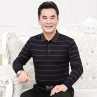 秋装中老年男士40-50岁翻领长袖T恤条纹薄款爸爸装上衣体恤