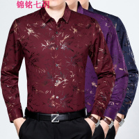 锦铭七玥春秋中男薄款长袖衬衫40-50岁免烫宽松衬衣男休闲上衣爸爸装