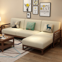 法派克 沙发 北欧布艺沙发客厅家具实木沙发 现代简约 四人位+贵妃+单人 1+2+3组合 原木色/胡桃色