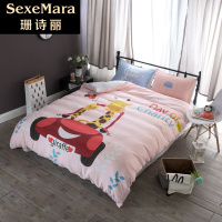 珊诗丽四件套三件床单套床人学米全棉保暖纬纱全棉米床贡缎.床品笠绒纯棉纯棉双人被....床上长颈鹿1.8米床四件套被套20