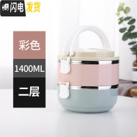 三维工匠不锈钢保温提锅2层炫彩色 学生儿童成人保温便当盒家用饭盒 7号1.4黄色[送保温袋餐具]