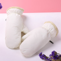 加绒毛绒手套女秋冬季保暖韩版男学生骑车双层加厚白色均码