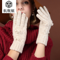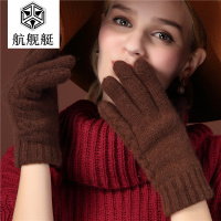 手套针织女士秋冬季手套保暖分指手套羊毛纯色学生可爱手套