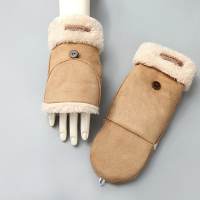 翻盖露指手套男冬韩版加厚半指手套情侣秋冬骑车保暖毛绒学生打字