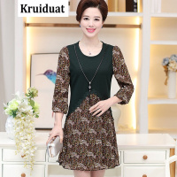 eosciy/Kruidvat2017中老年套头女装长袖雪纺衫拼接针织韩版妈妈装打底连衣裙