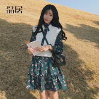 春季女装韩版木耳边小碎花雪纺连衣裙气质修身长袖打底裙学生长裙