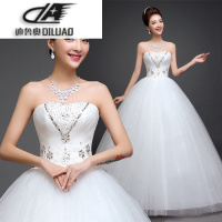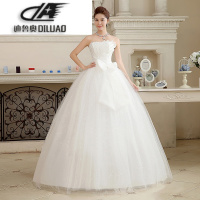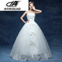 2017冬新款韩版显瘦抹胸婚纱齐地蓬蓬裙绑带简约镶钻婚纱蝴蝶节