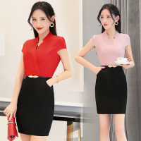 尊首新款中腰套头通勤连衣裙2017年夏季短袖中长款拼接拉链优雅简约夏