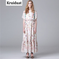 Kruidvat2017春夏新款小鸟短袖连衣裙拼接拉链荷叶边B092图片色