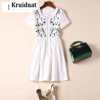 Kruidvat2017春夏季欧美新款女装圆领短袖拉链连衣裙白色